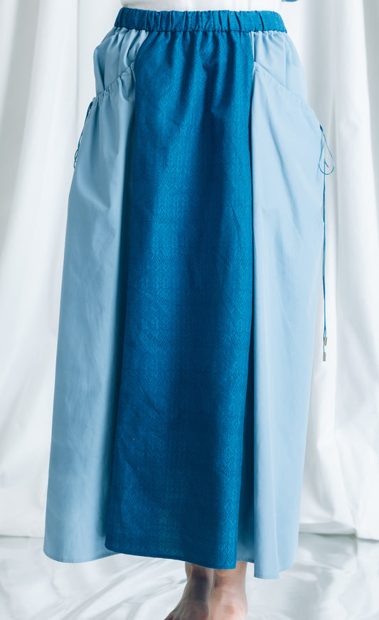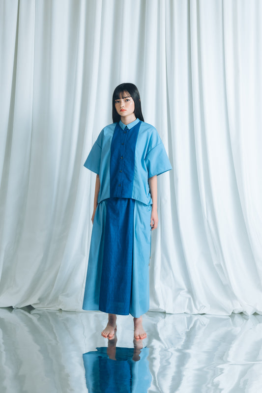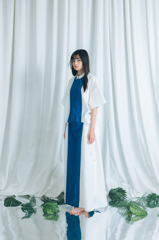 【YOAKE】 ギャザーTOPS(White×Blue)
