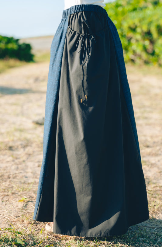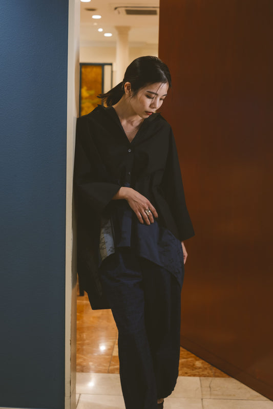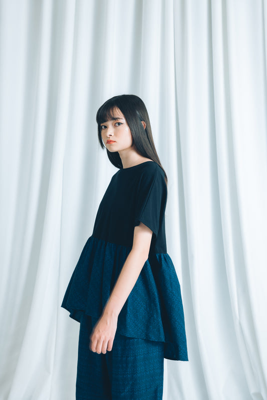 【YOAKE】 ギャザーTOPS(Black×Navy)