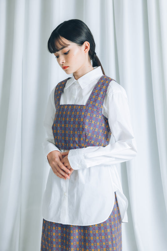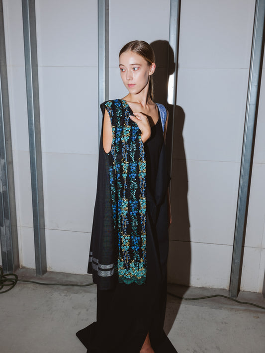 【YOAKE】チュール刺繍ロングジレ(Black)