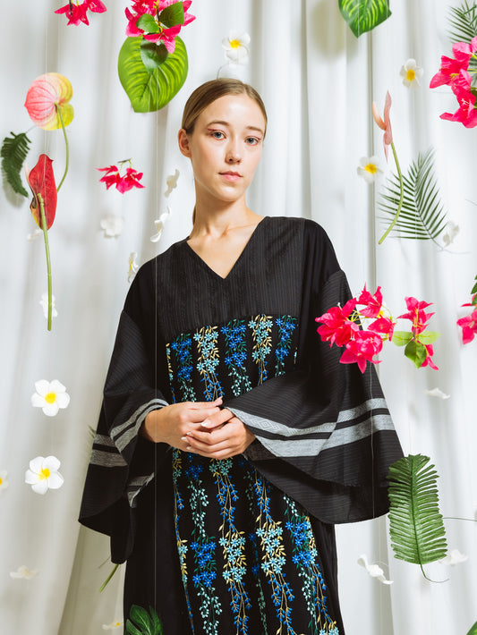 【YOAKE】チュール刺繍ワンピース(Black)