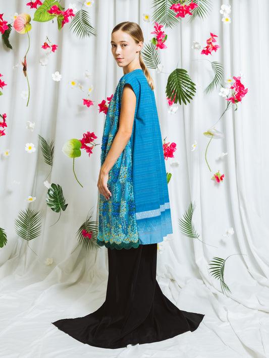 【YOAKE】チュール刺繍ロングジレ(Emerald green)
