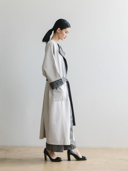 【YOAKE】ロングカーディガン(Gray×White)