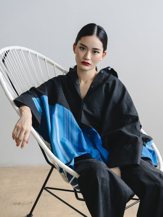 【YOAKE】2WAY長袖シャツチュニック (Black×Blue)