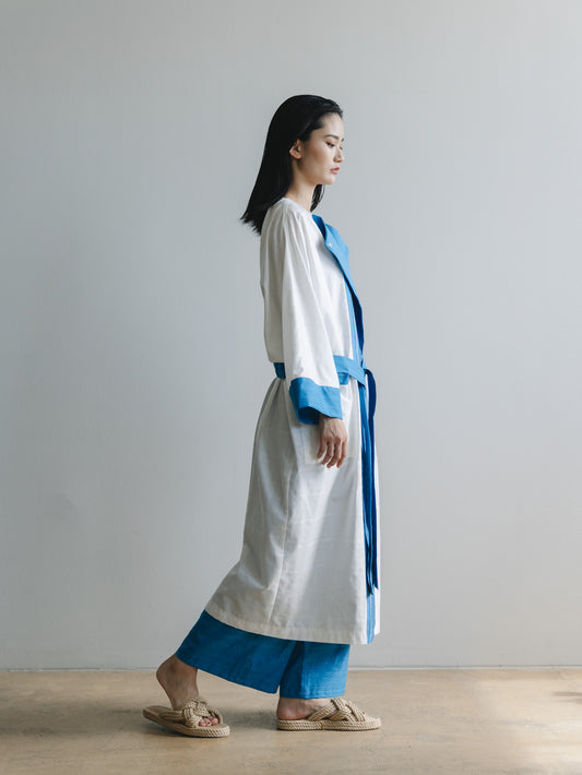 【YOAKE】ロングカーディガン(White×Blue)