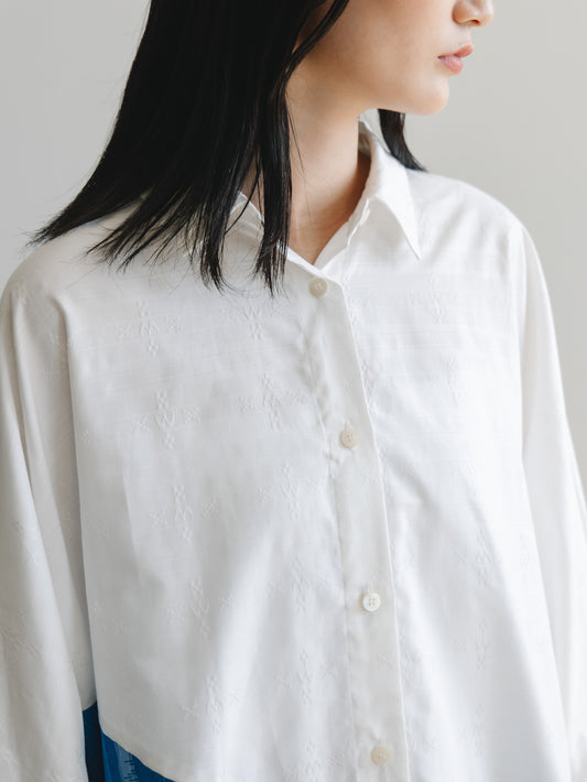 【YOAKE】2WAY長袖シャツチュニック (White×Blue)