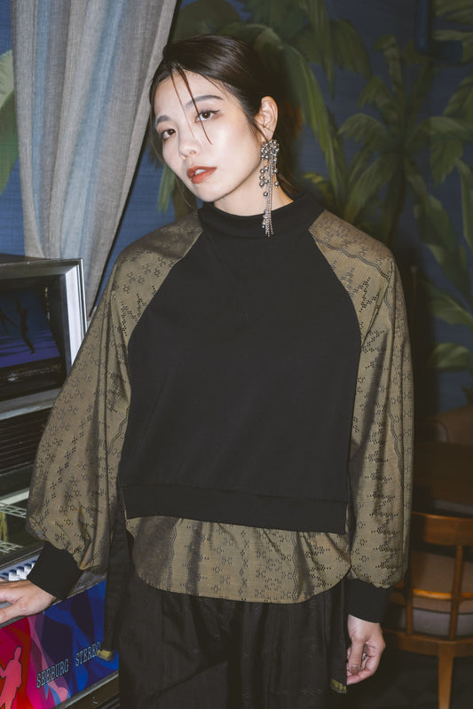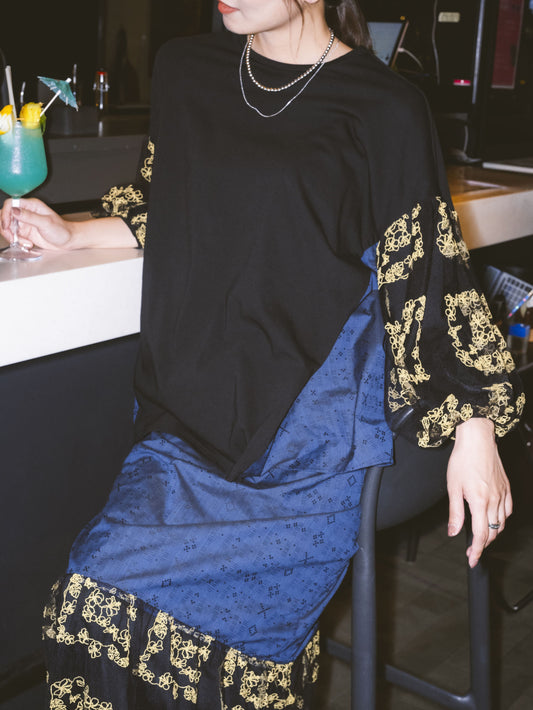 【YOAKE】チュール刺繍パフスリーブチュニック (Black)