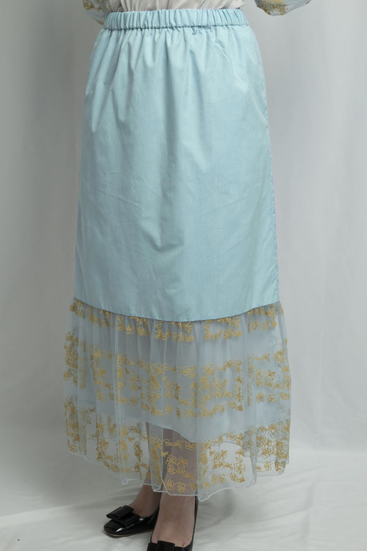 【YOAKE】チュール刺繍ロングスカート (Light blue)