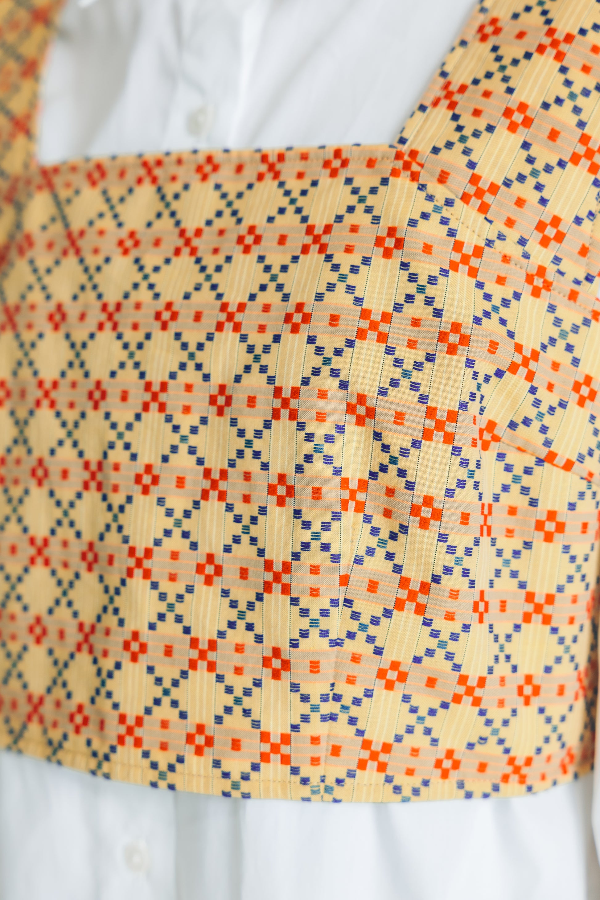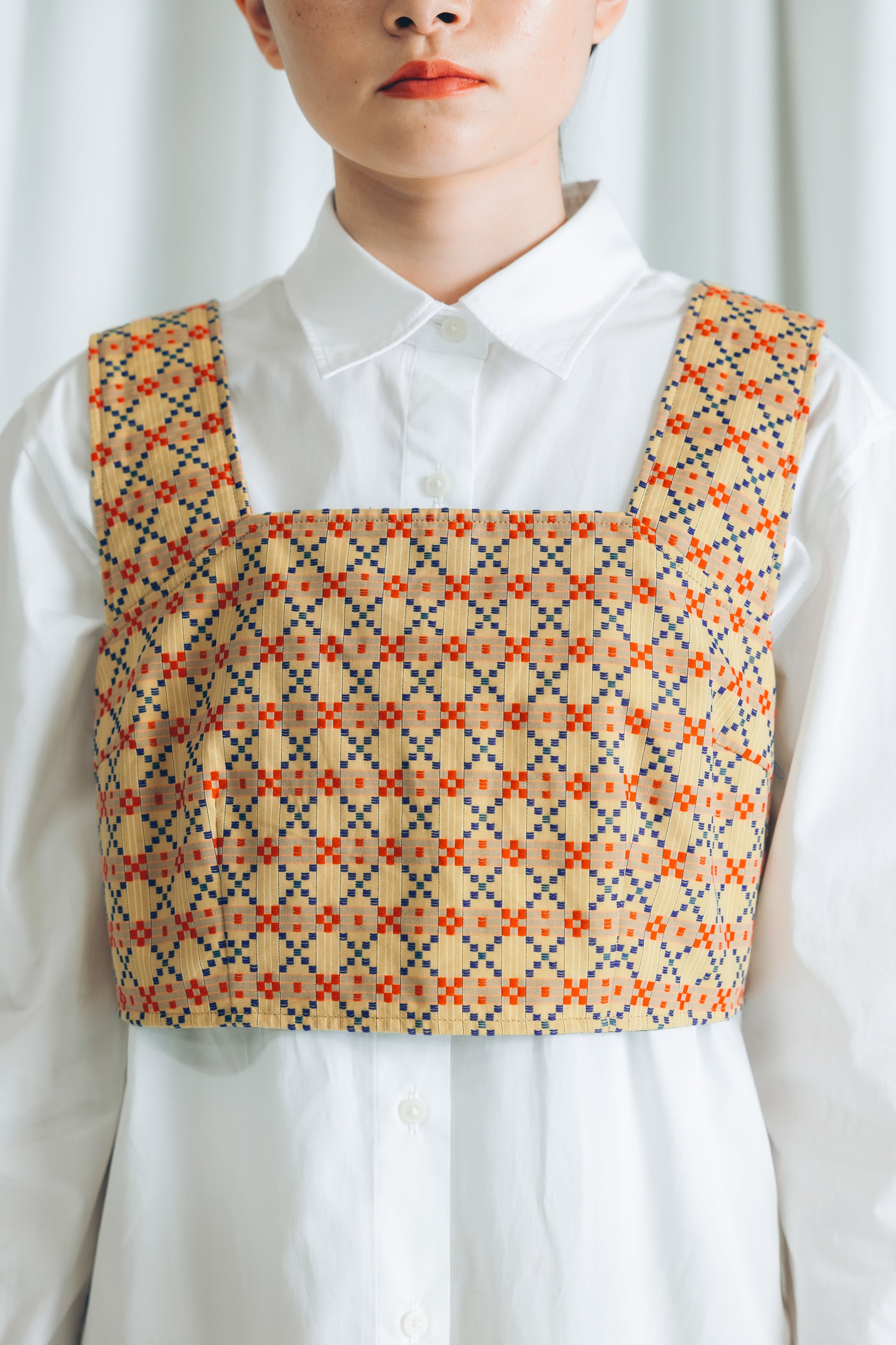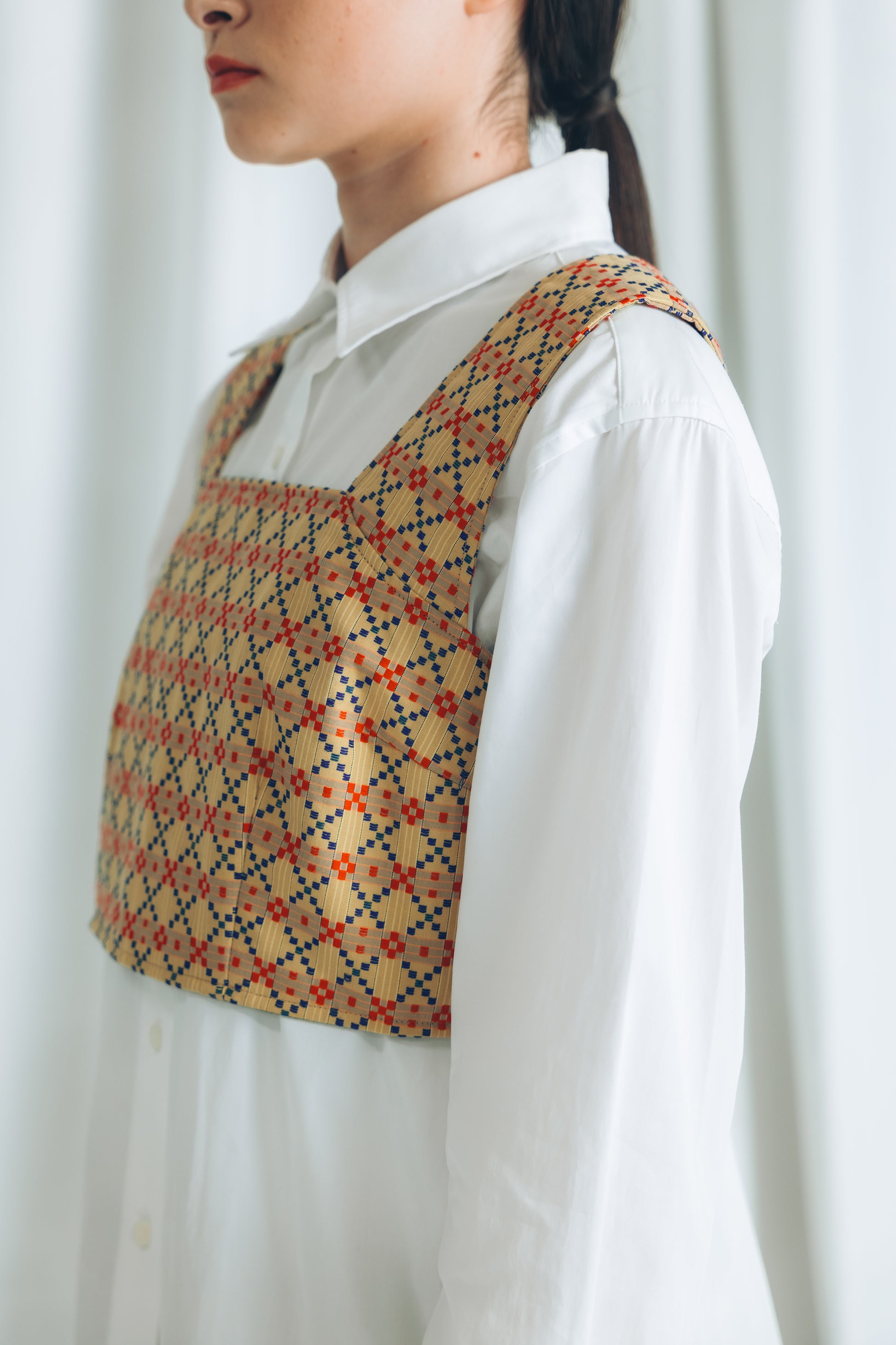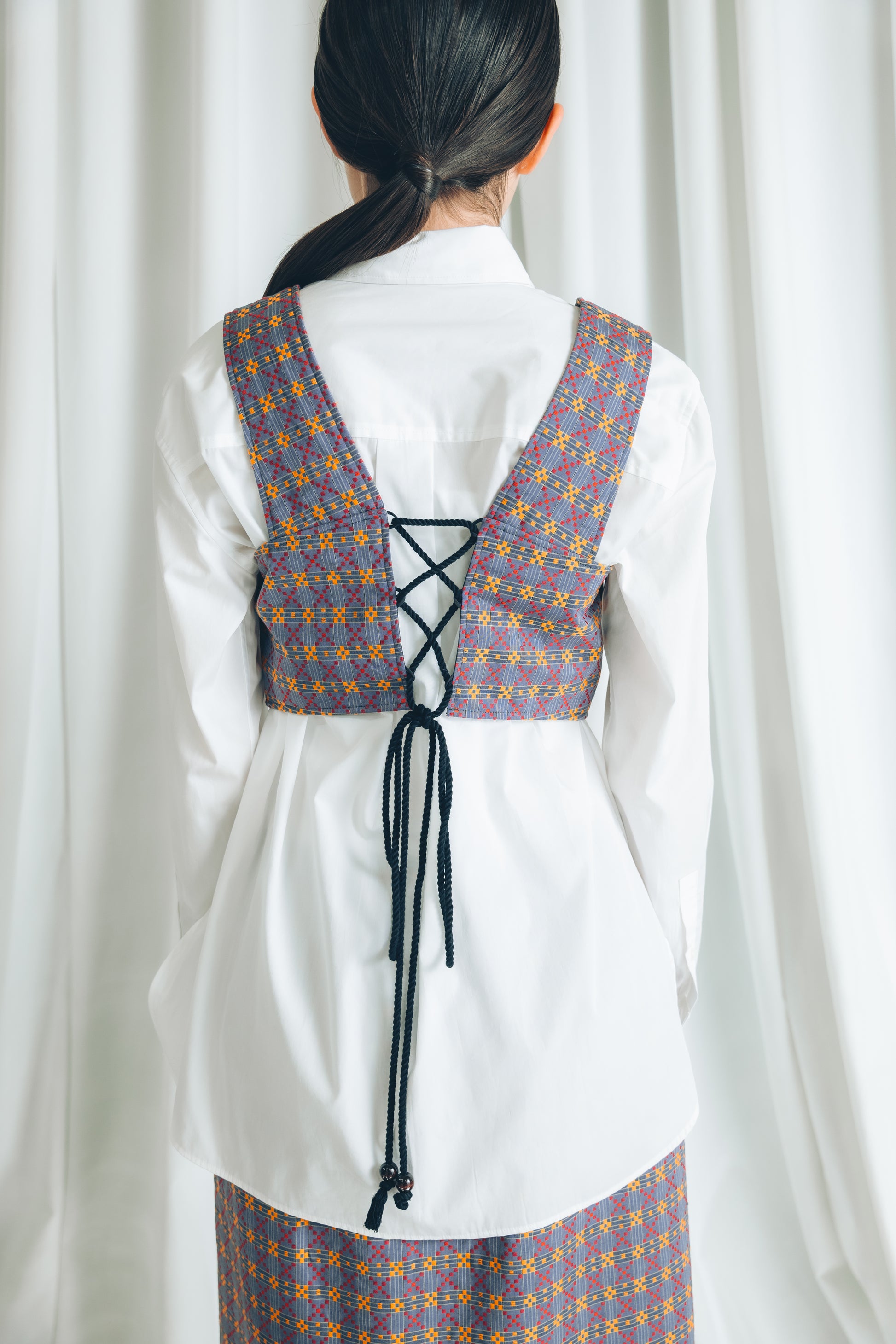 ぐすく花織の浮織柄を全面に楽しめるビスチェ。