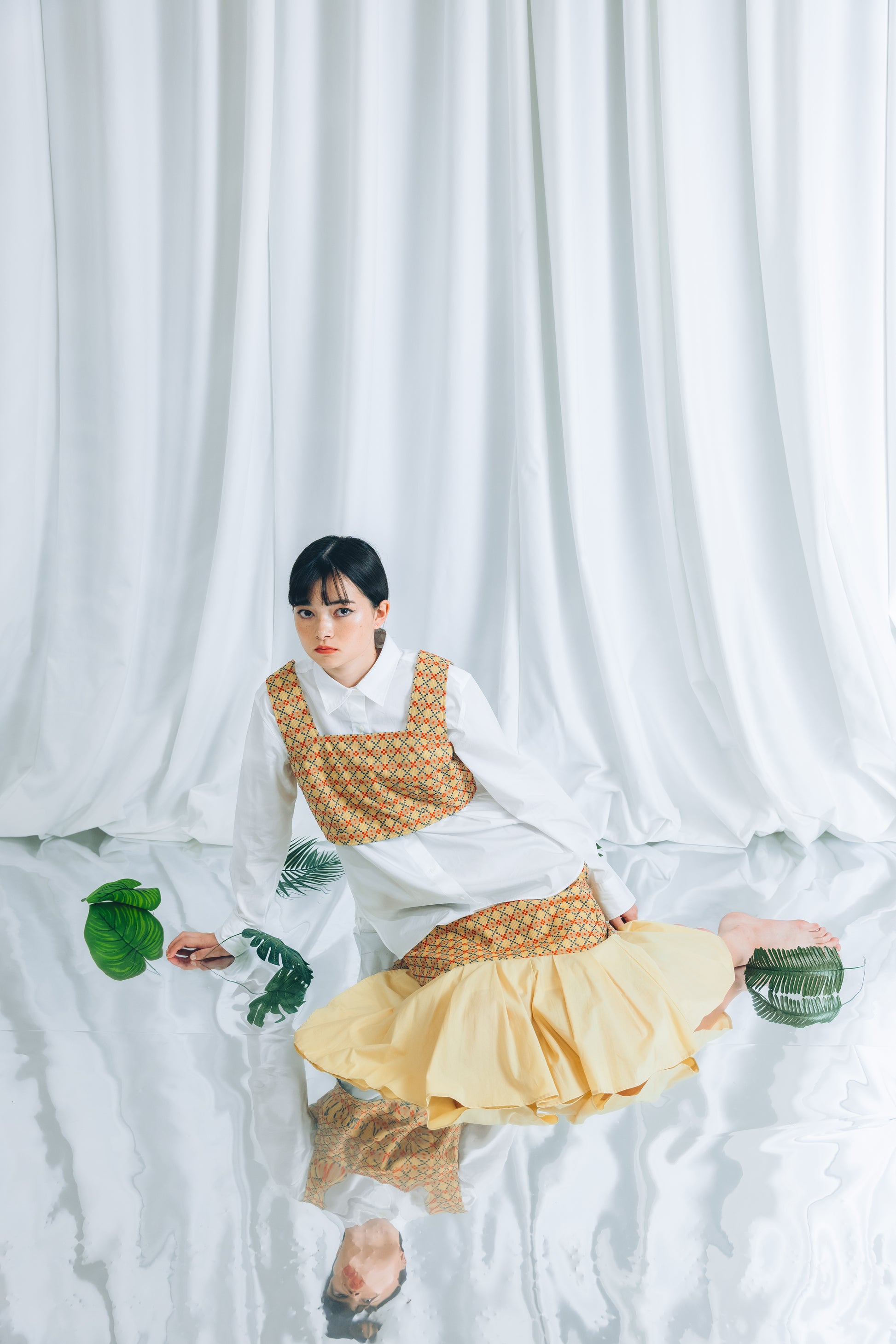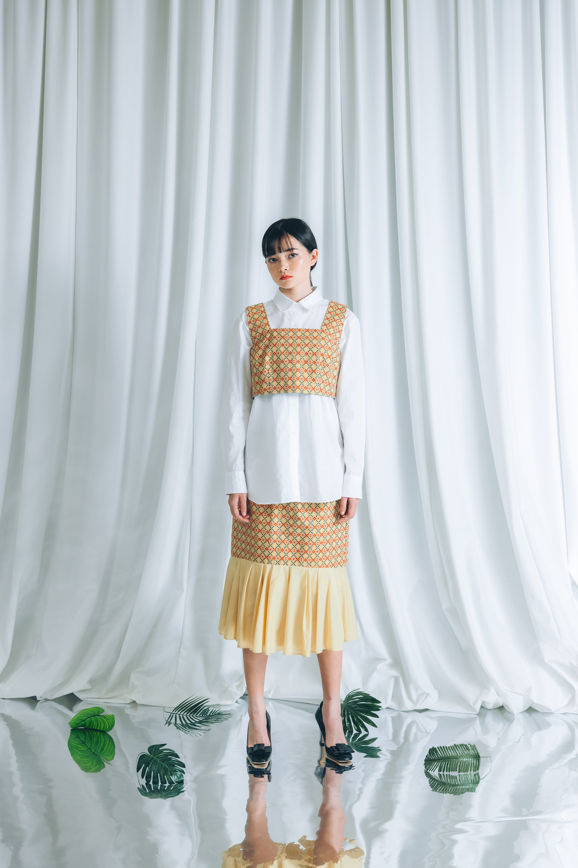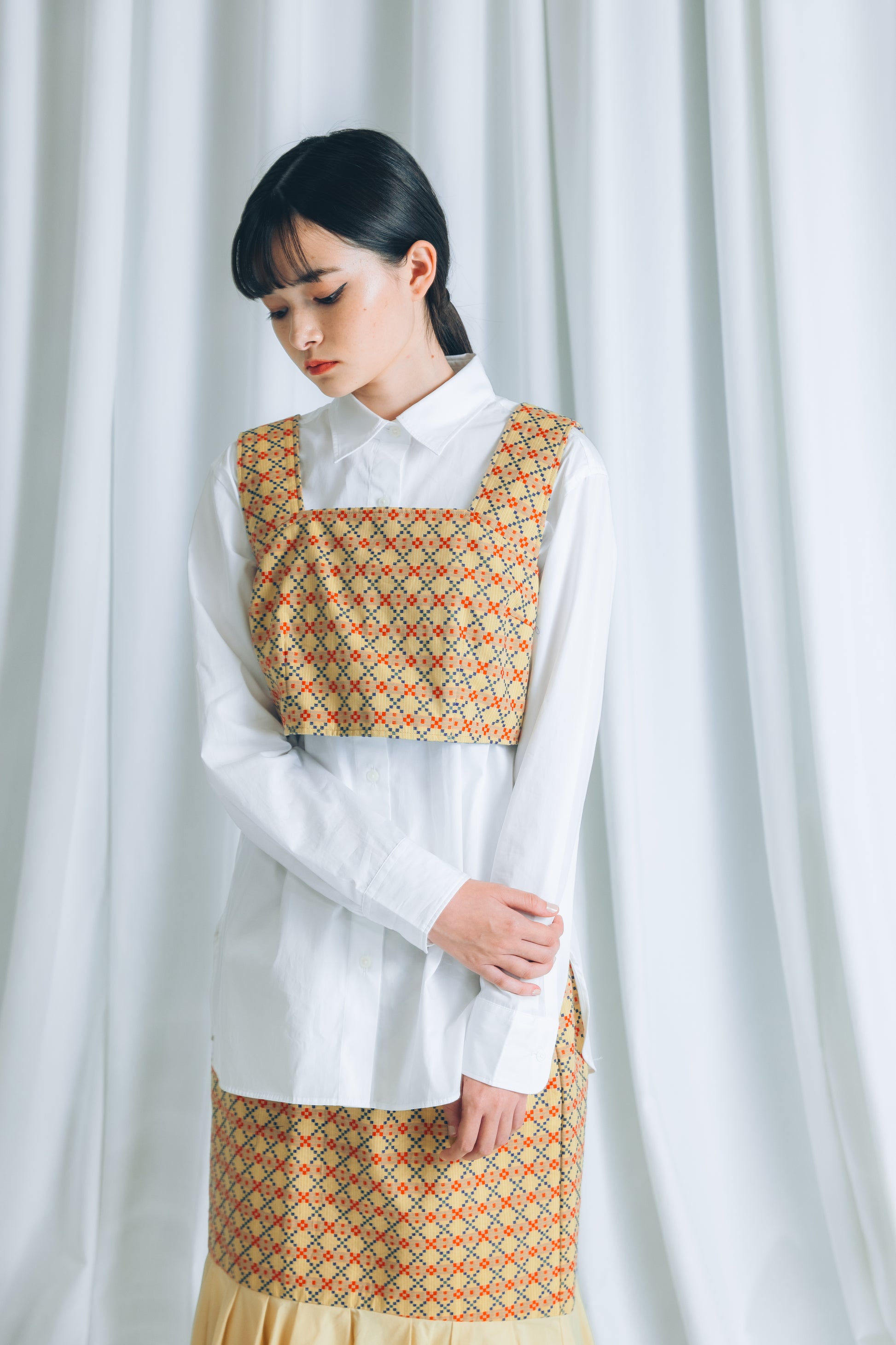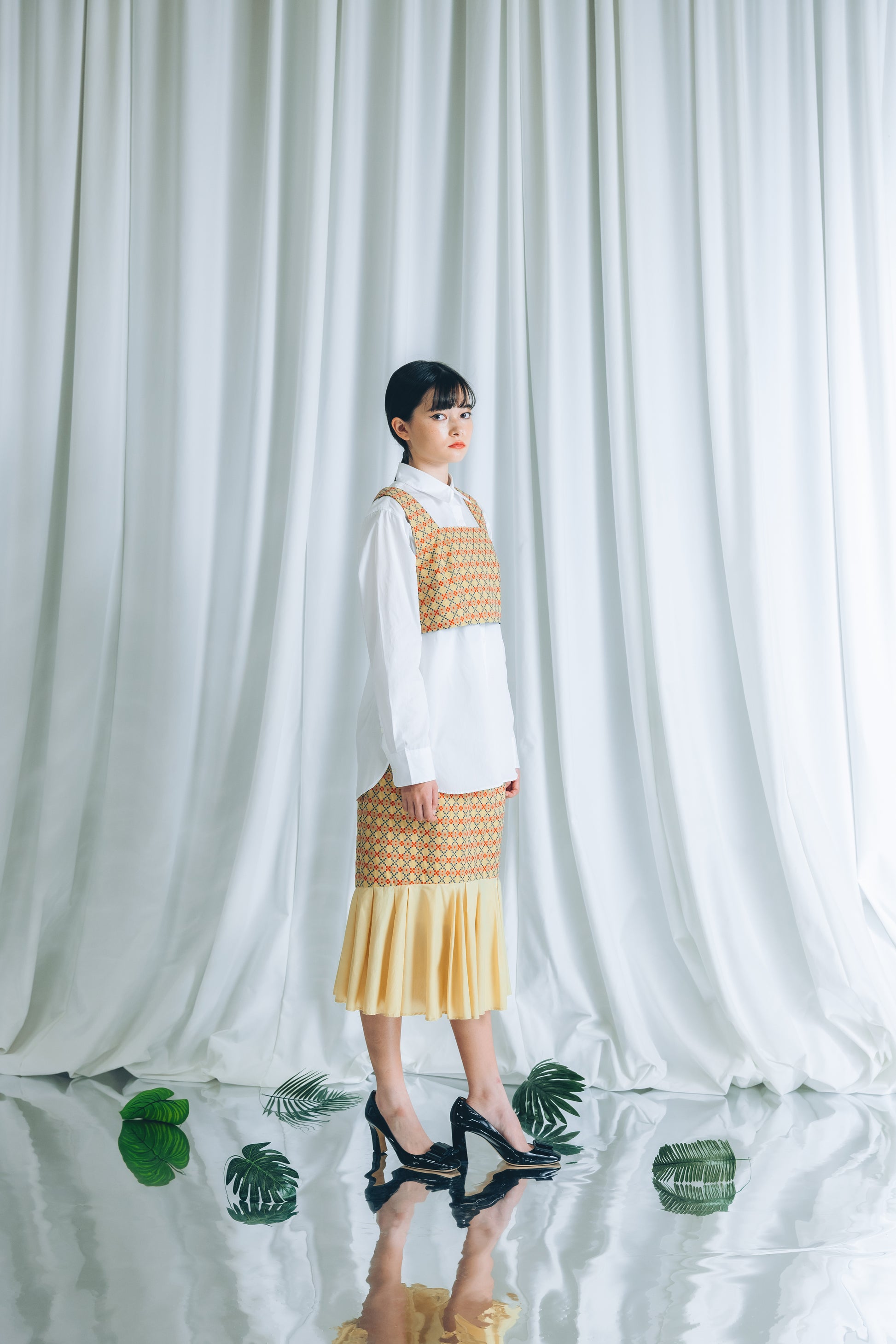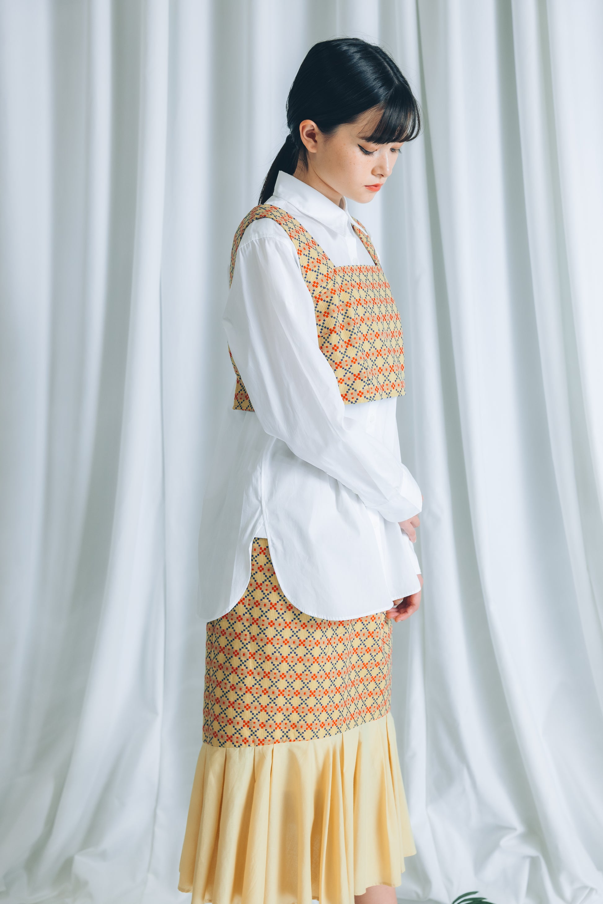 別売りの裾タックスカートとスタイリングをお楽しみください。