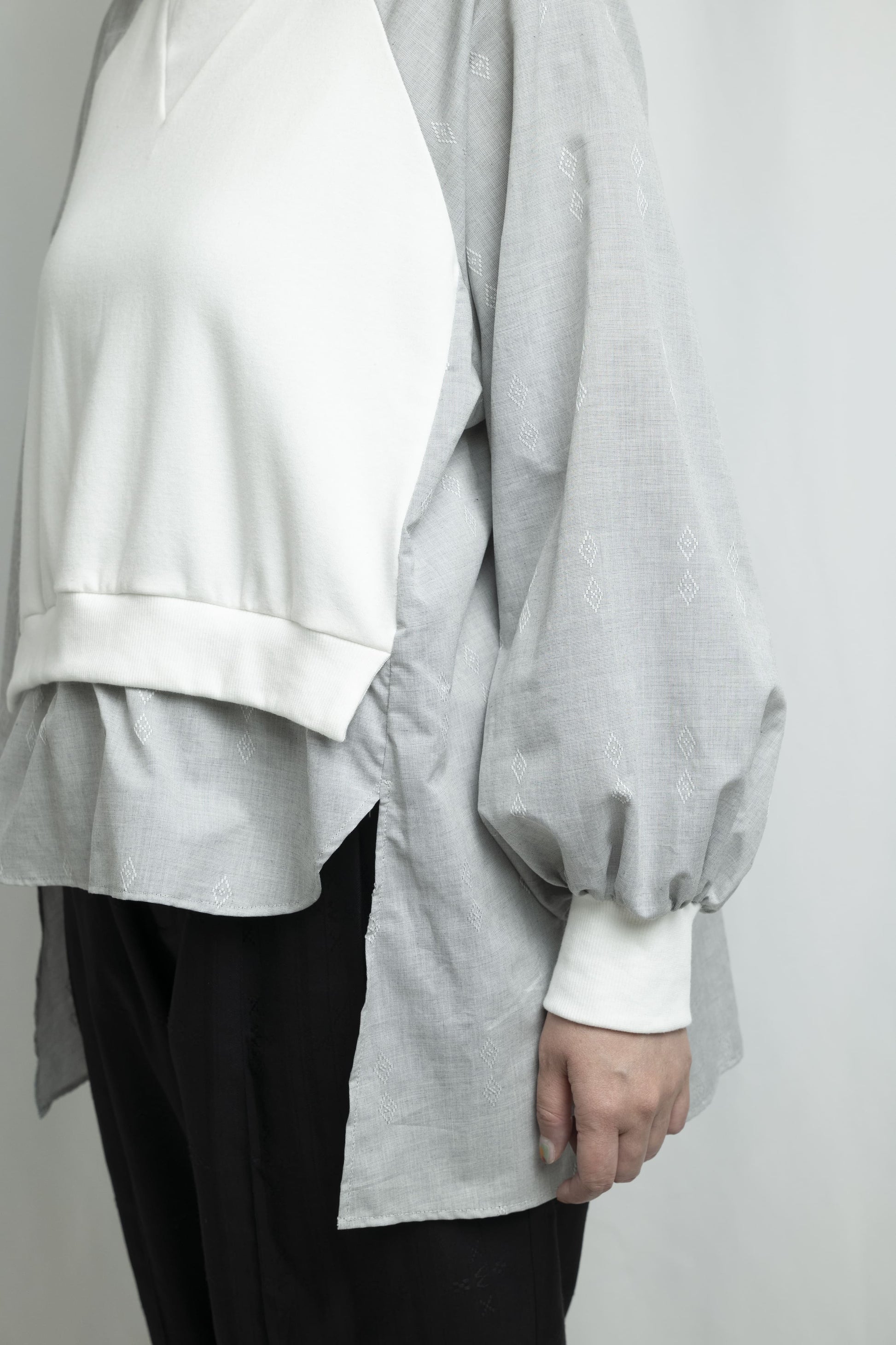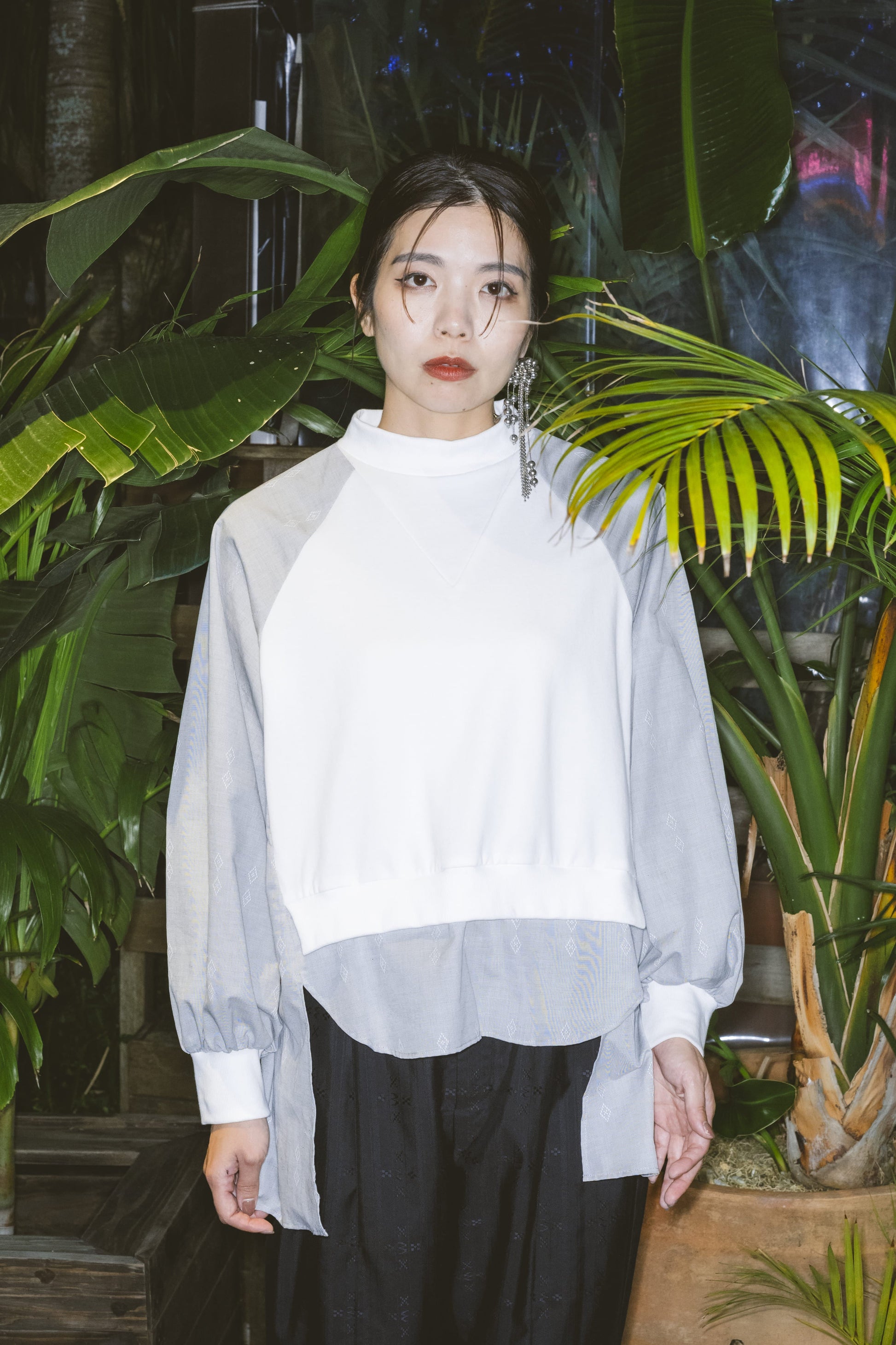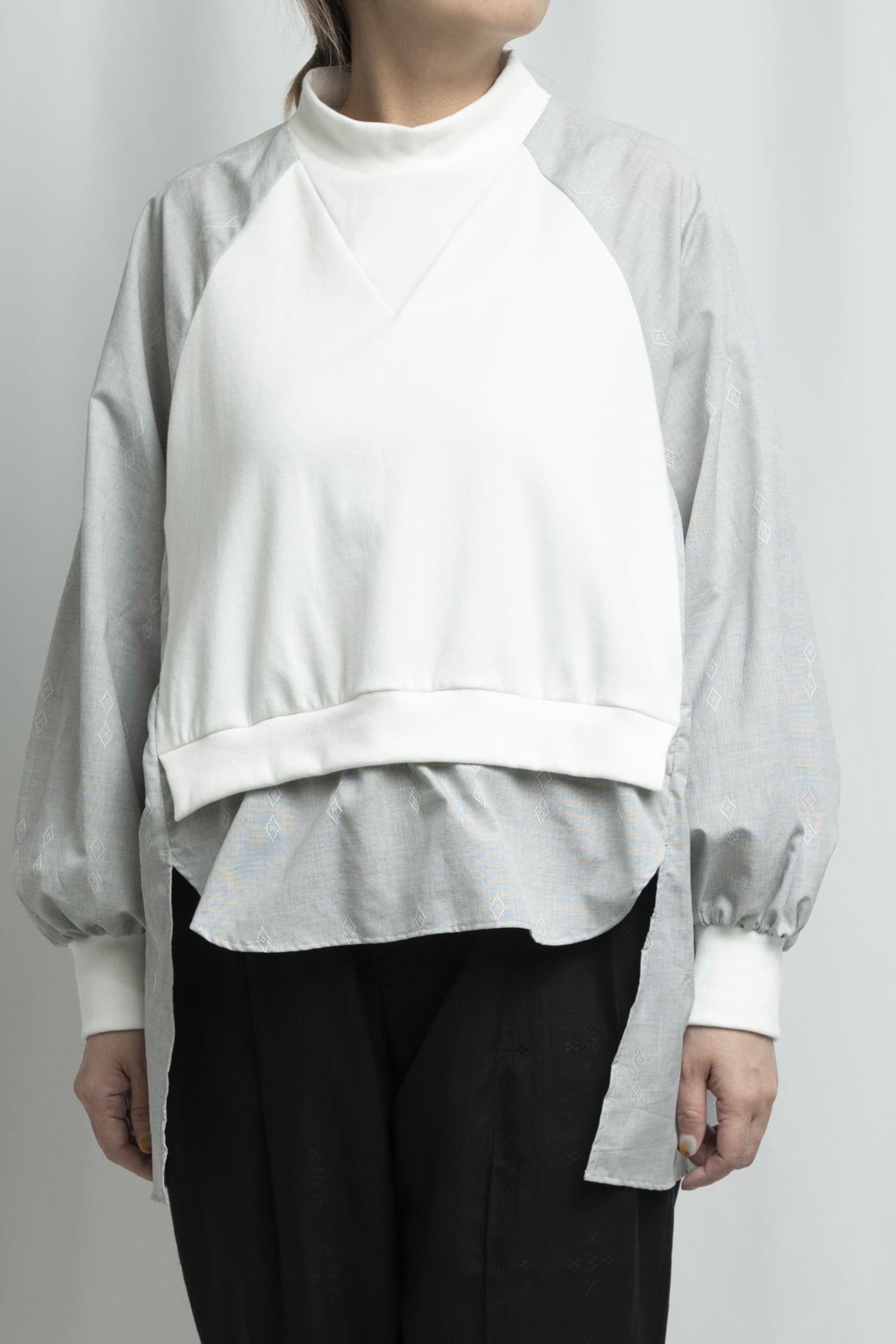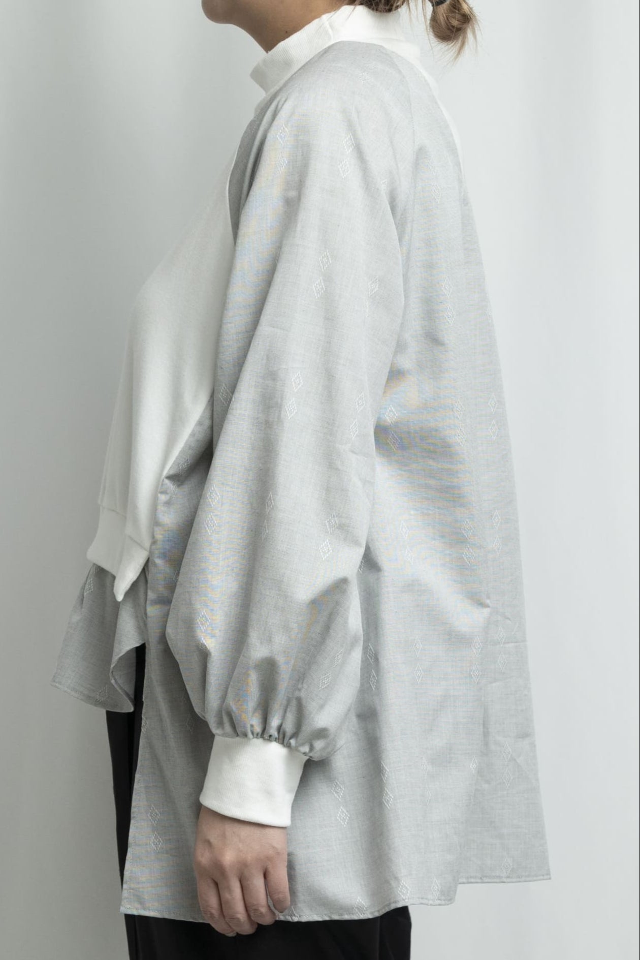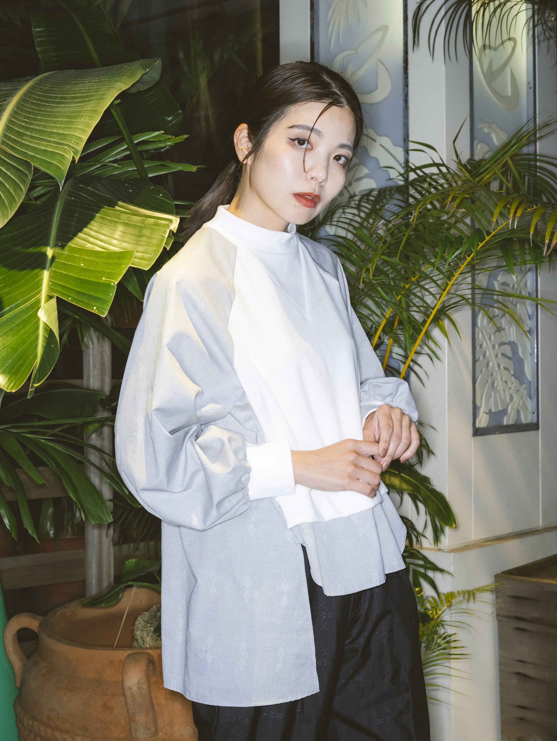 繊細に織り込まれたミンサー柄と、国産ミニ裏毛のドッキングチュニック。ゆったり体型カバーをしつつ、エッジの効いたデザインでデイリーにお召し頂けます。別売りのテーパードパンツとコーディネートをお楽しみください。