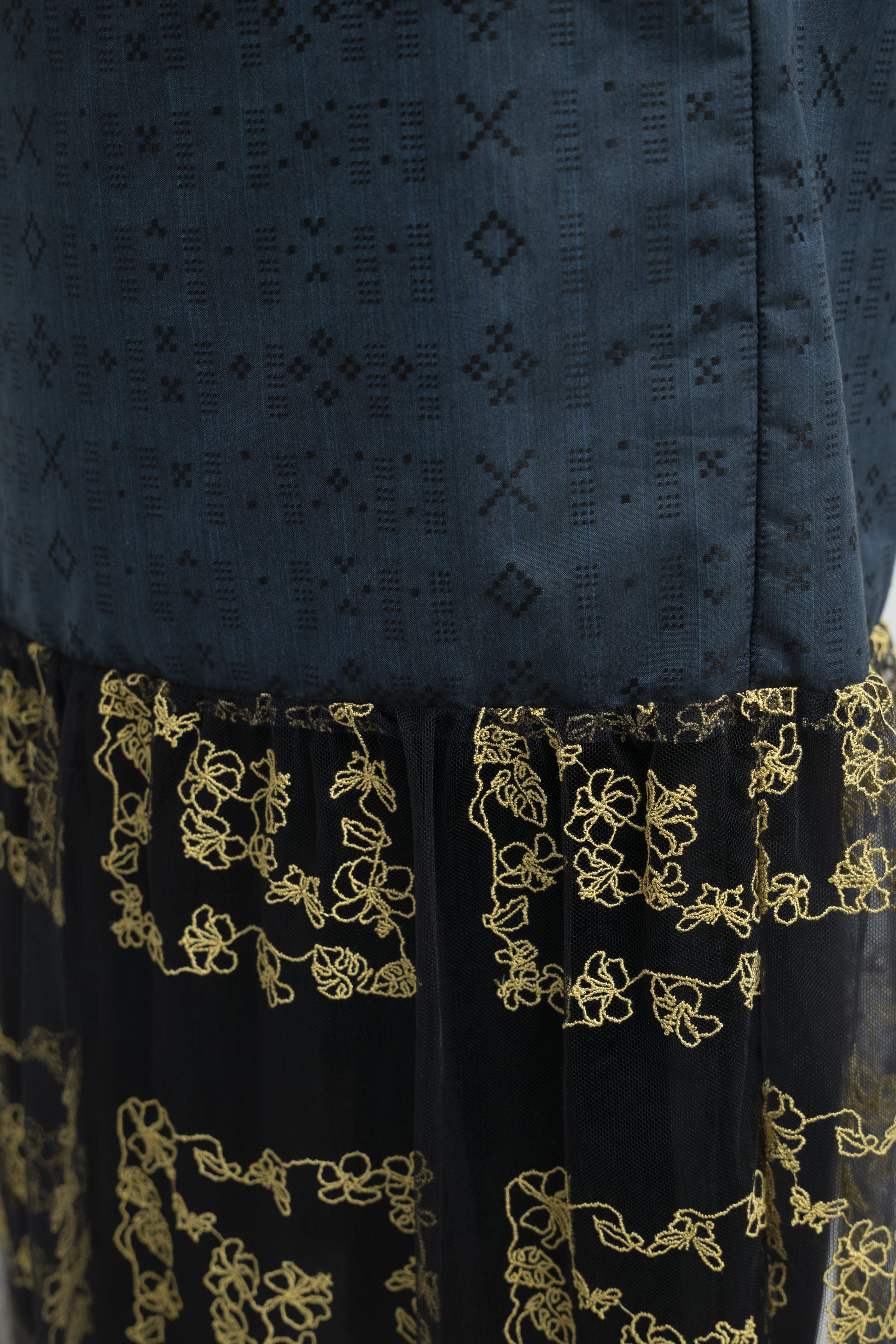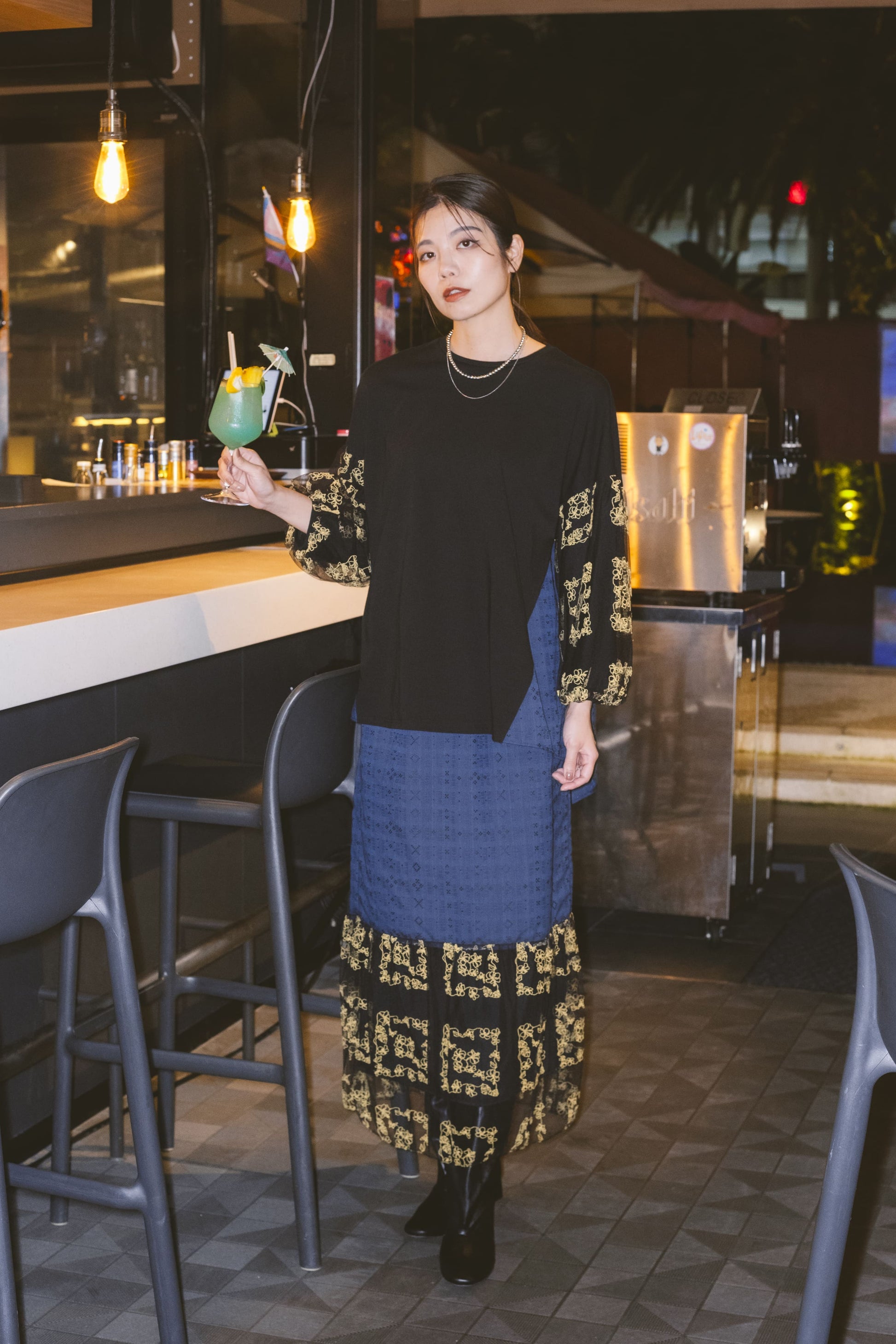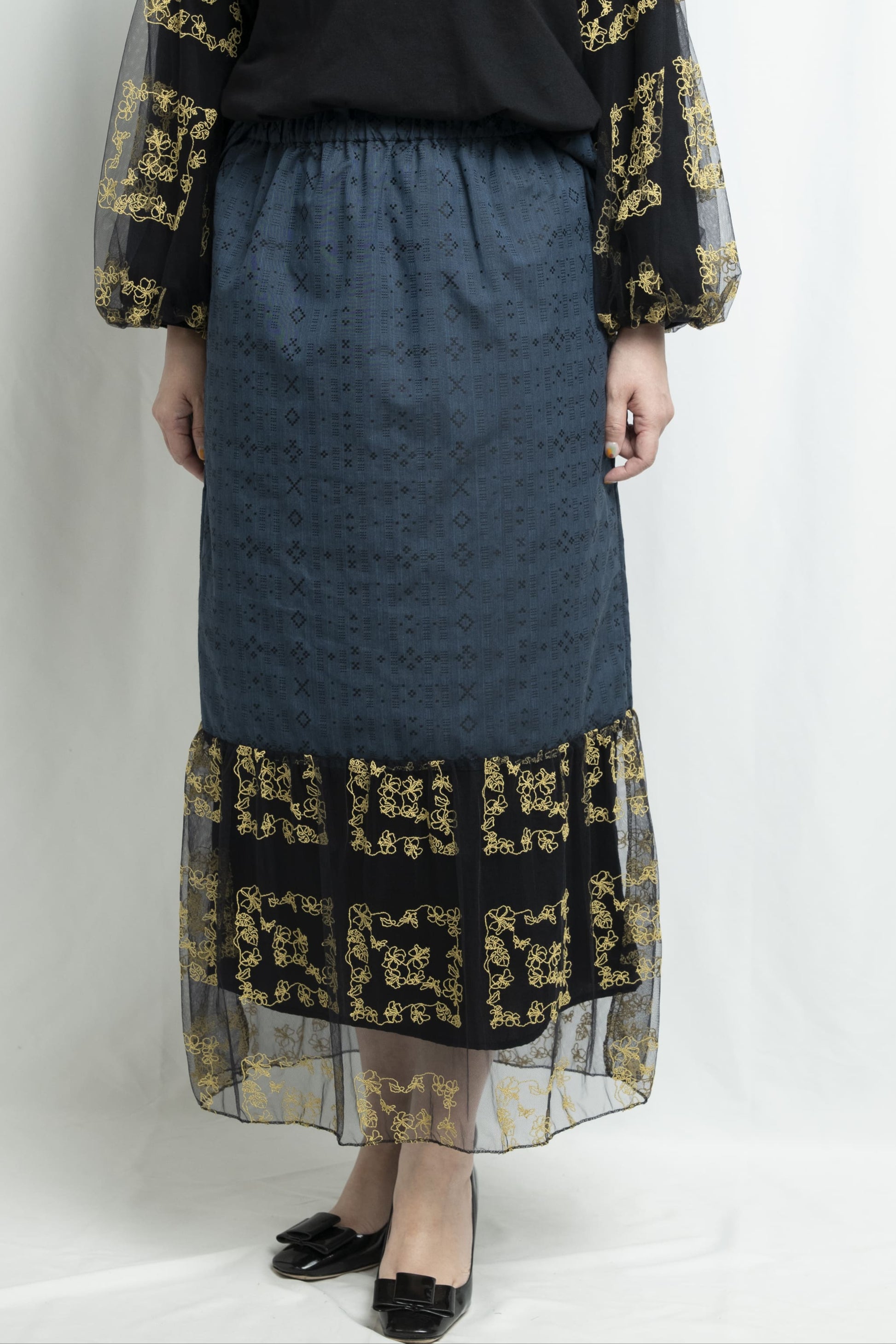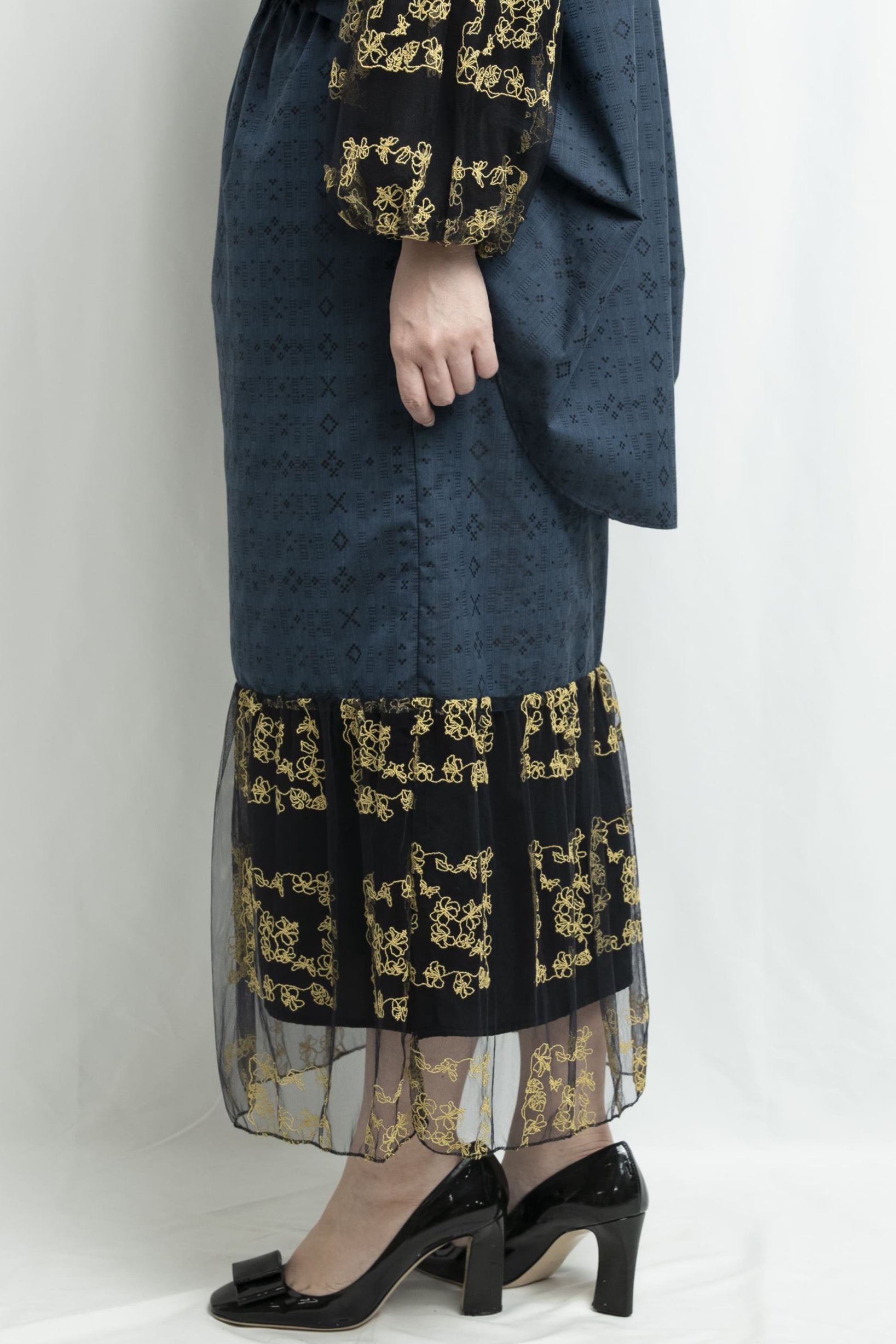 【YOAKE】チュール刺繍ロングスカート (Navy)